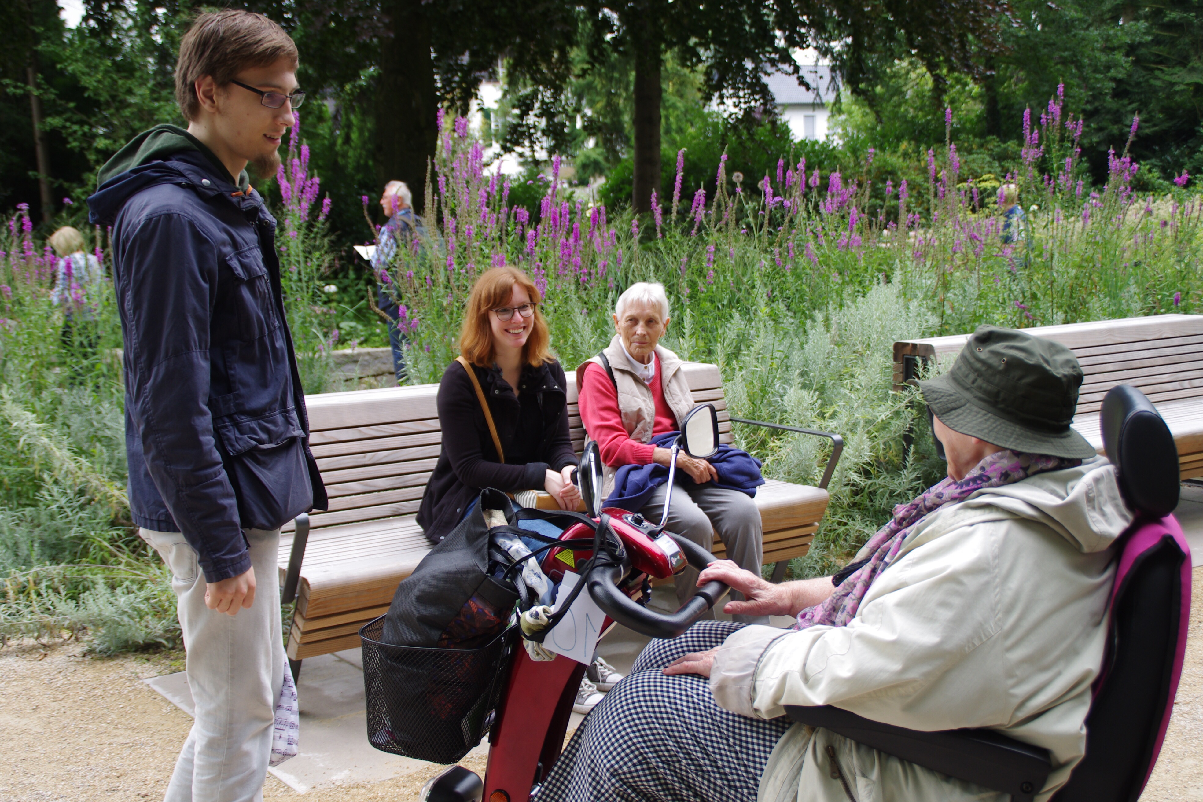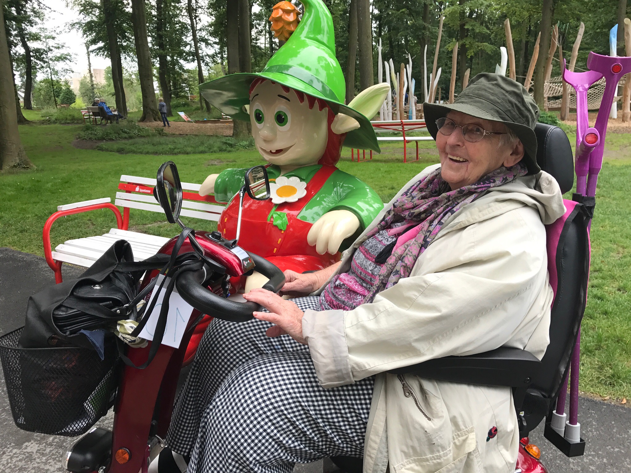 Der Tag war anspruchsvoll: Frühstück mit Katharina und Valentin zu Hause, dann Oma Anni abholen, Weiterfahrt nach Lage, Oma Erna dazupacken, Weiterfahrt nach Bad Lippspringe bis zum LaGa-Parkplatz, von dort mit dem Shuttlebus bis zum LaGa-Gelände, E-Scooter für Oma Erna am Eingang abholen und zur Shuttle-Haltestelle bringen, und dann endlich(!) aufs Gelände.